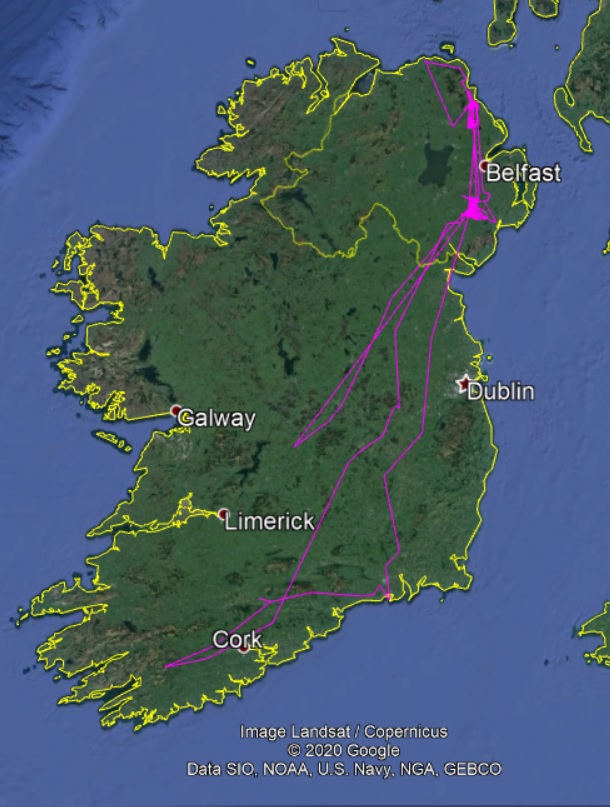 I check on the tags first thing every morning (after I have made my morning coffee) and it is always a really fun way to start the day. I get a little frisson of excitement when I see that a tag has updated. What am I going to get today?! Will the bird have travelled to some amazing far-flung place (i.e. Antrim…) or will it still be in the area that you left it the last time its tag sent data? Most of the time it’s nothing exciting and the bird has not ranged far (though it is still nice to see the bird is still alive and kicking!) but sometimes you get wonderful surprises.