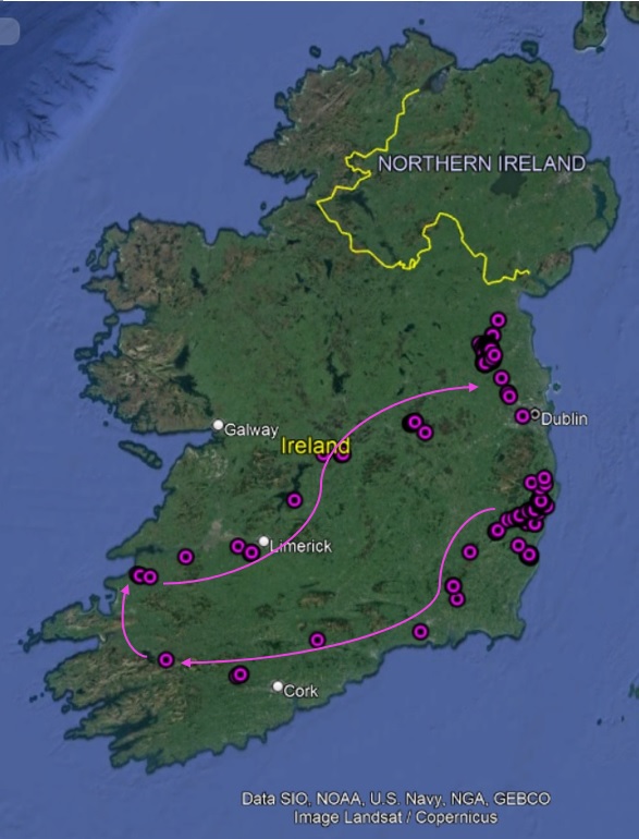 In May 2020, when it would have been almost 1 year old, The Wanderer took off on a round trip from where it had been staying in Co. Wicklow to Wexford, Waterford, Cork, Kerry, Limerick, Tipperary, Offaly and Kildare – in 8 days!
