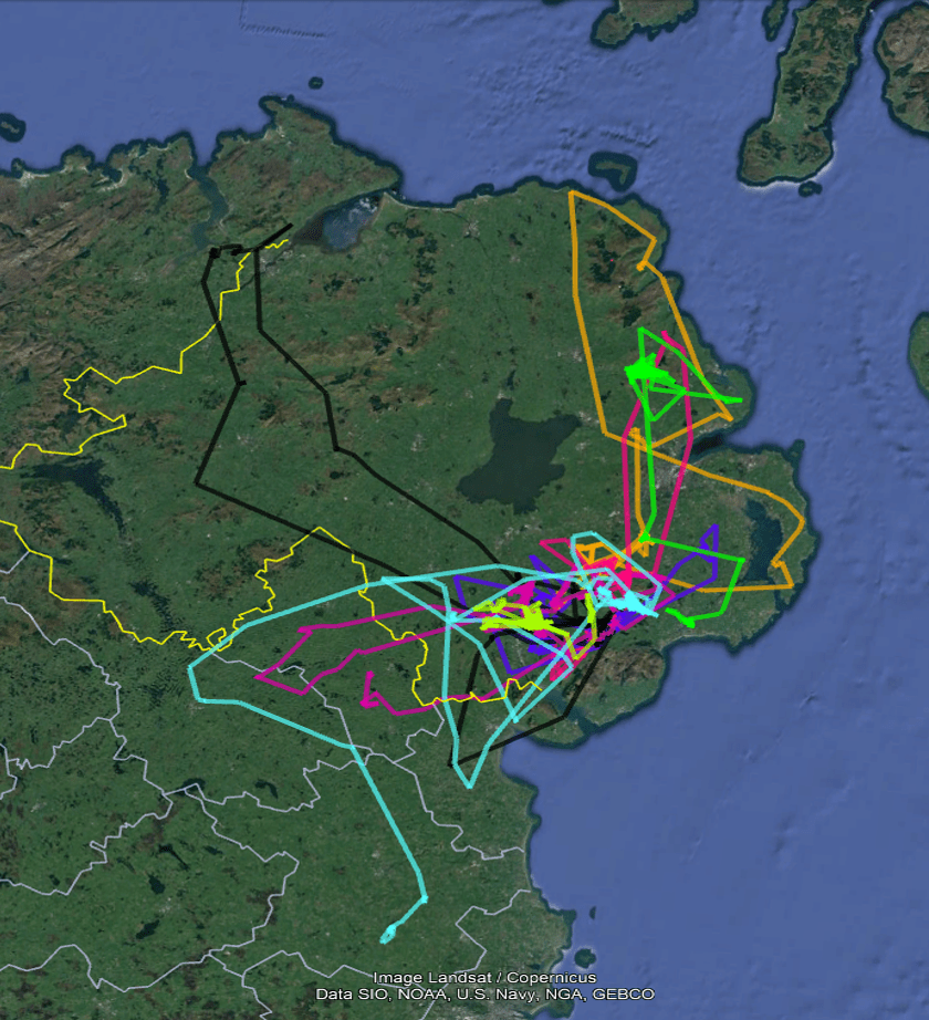 Thanks to additional funding received from the Environment Fund from Northern Ireland Environment Agency (NIEA) the Hawk-Eyes project continued to deploy satellite tags on some of our most persecuted species in Northern Ireland and the Republic of Ireland in 2024. Focus this year has been on Red Kites in particular. Juvenile Red Kite 'Green H6' … Continue reading The 2024 Red Kite cohort start exploring